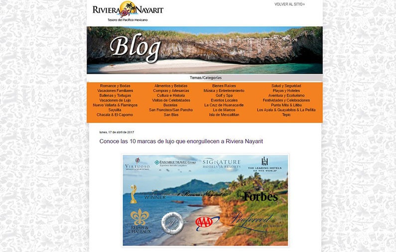 Riviera Nayarit fue galardonada en enero de 2016 como el Mejor Destino Turístico de Lujo en los Travvy Awards, en el que se reconoce el más alto estándar de excelencia en la industria hoy en día honrando a las compañías de viajes, productos y destinos por sus logros sobresalientes.