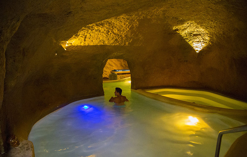 f universe up to the latest technology in multimedia, audio, video, special effects, laser, and music. The journey begins inside cenotes at different temperatures, colors, densities and physical-chemical compositions. Then, the tour continues in another section of the cave within this underground and underwater world; you enjoy the aspiration therapies with mint, eucalyptus, oxygen and ozone, as well as a full body exfoliation, cranial massage and revitalizing teas tasting. To finish in the last cave, there are aromatherapy tubs and capillary treatments with video projections and 5.1 sound.