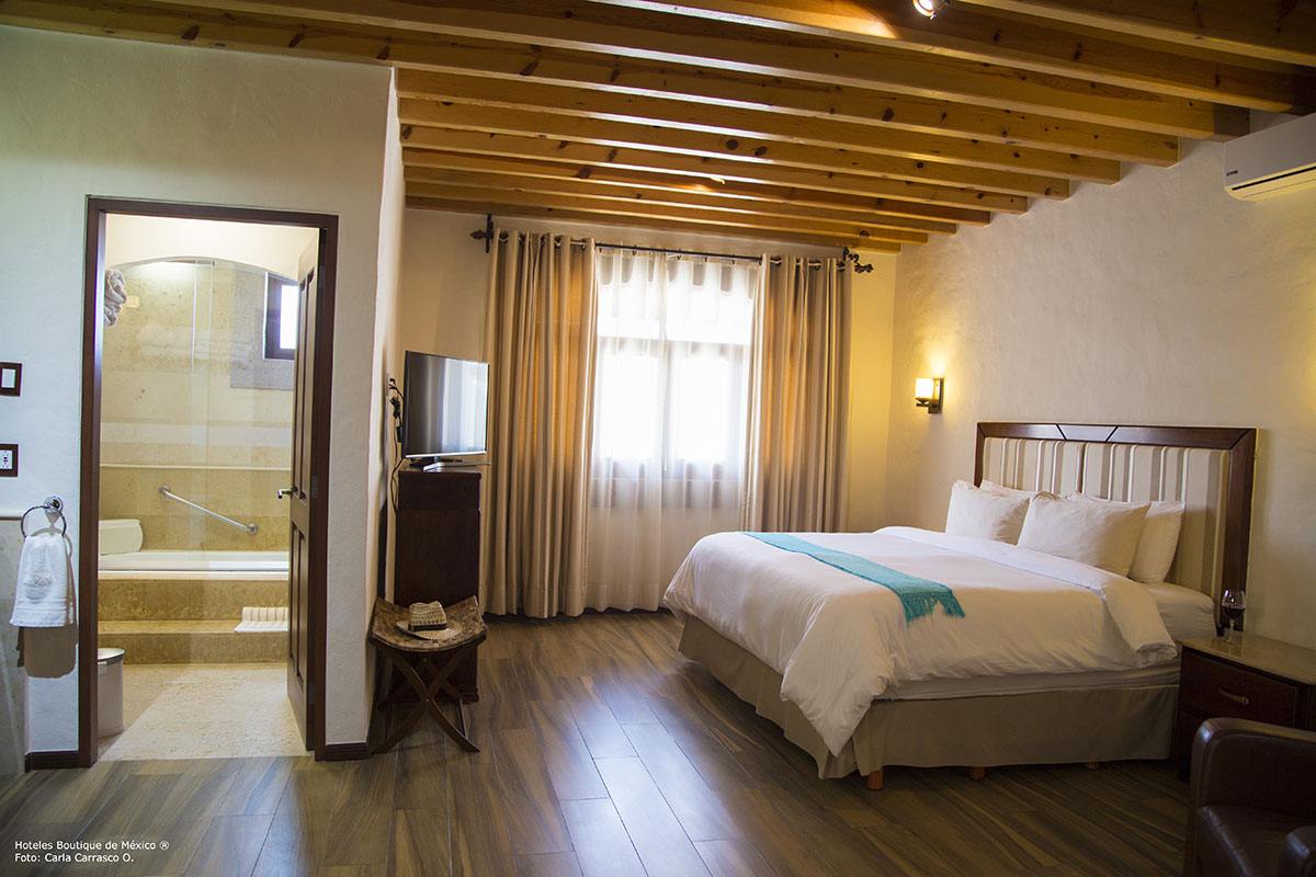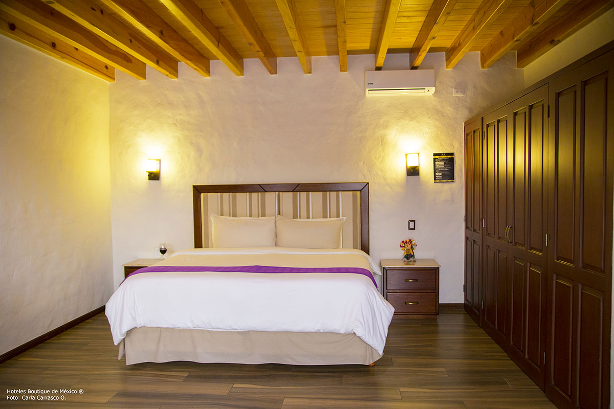 Boutique Hotel “La Casa de los Dos Leones “, nested in a beautiful historic casona whose construction dates from the nineteenth century, is superbly located in the Historical Center of Queretaro, considered a World Heritage Site. Its beautiful design combining wood and quarry distinguishes it and highlights the unique essence of the beautiful city of Queretaro.