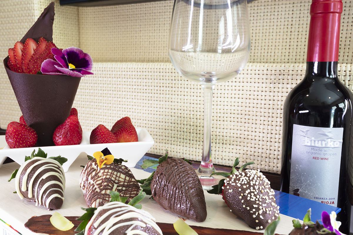 Massage to release tension and delight the couple with the best combination of red wine oil. Courtesy service with romantic detail. Champagne and strawberries covered in chocolate.