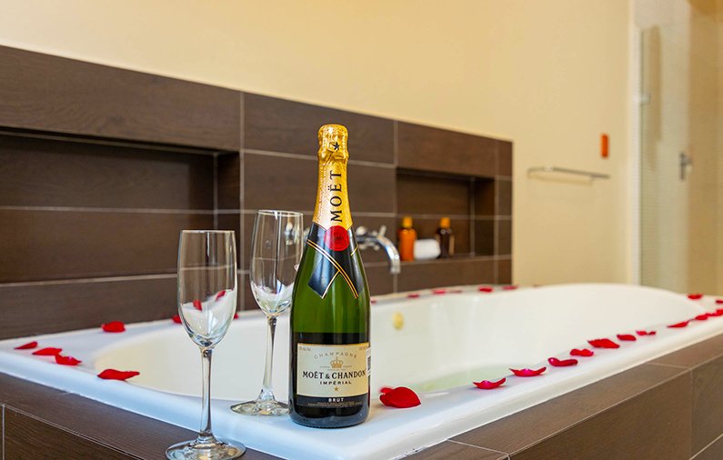 - Roses and cold champagne in the room