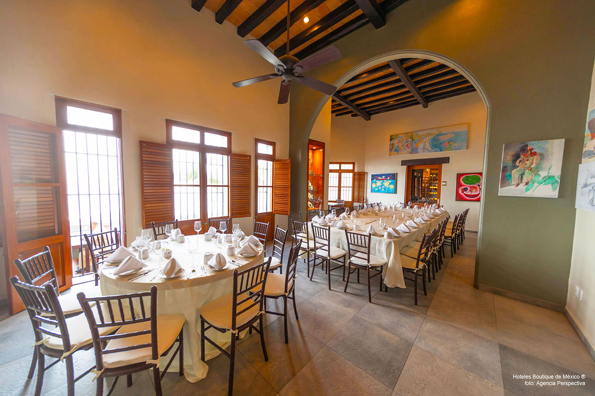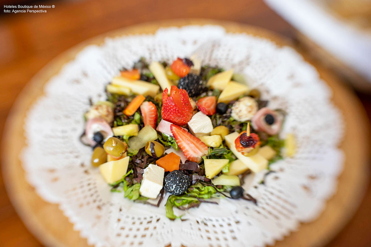 La magnifica experiencia se complementa con un exquisito menú que ofrece una mezcla de especialidades preparadas con ingredientes tradicionales, innovadoras variaciones de platillos mexicanos así como las especialidades internacionales que continúan con el contraste de lo tradicional y lo contemporáneo.