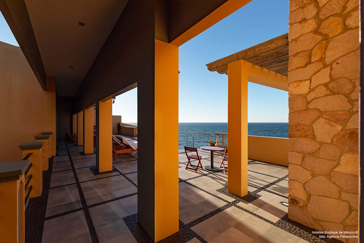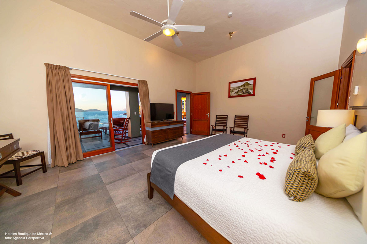 Ubicada en el tercer piso, cuenta con una vista al Océano Pacífico y acceso inmediato a la piscina de borde infinito, Conchita es la habitación más grande y más amplia con un patio privado y sillas de descanso.