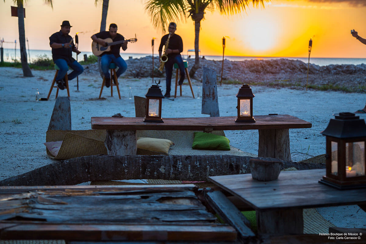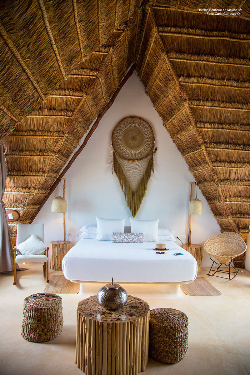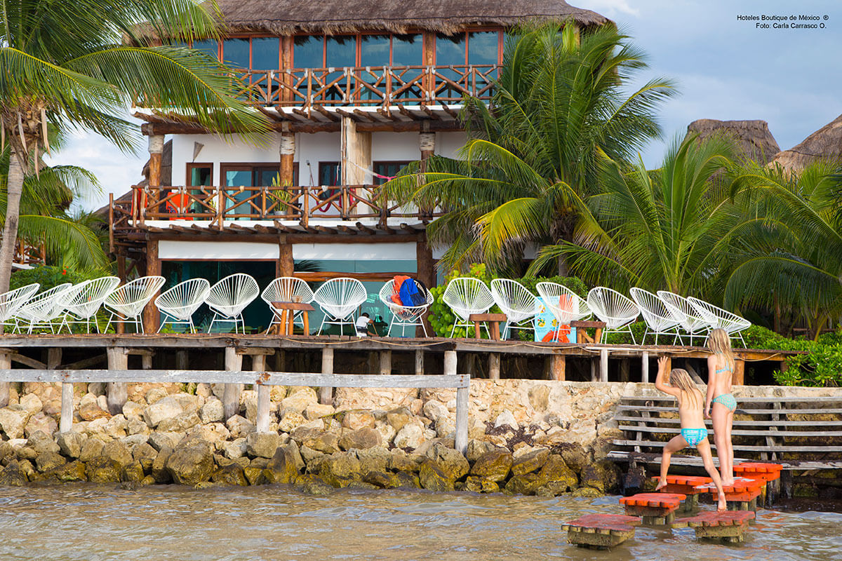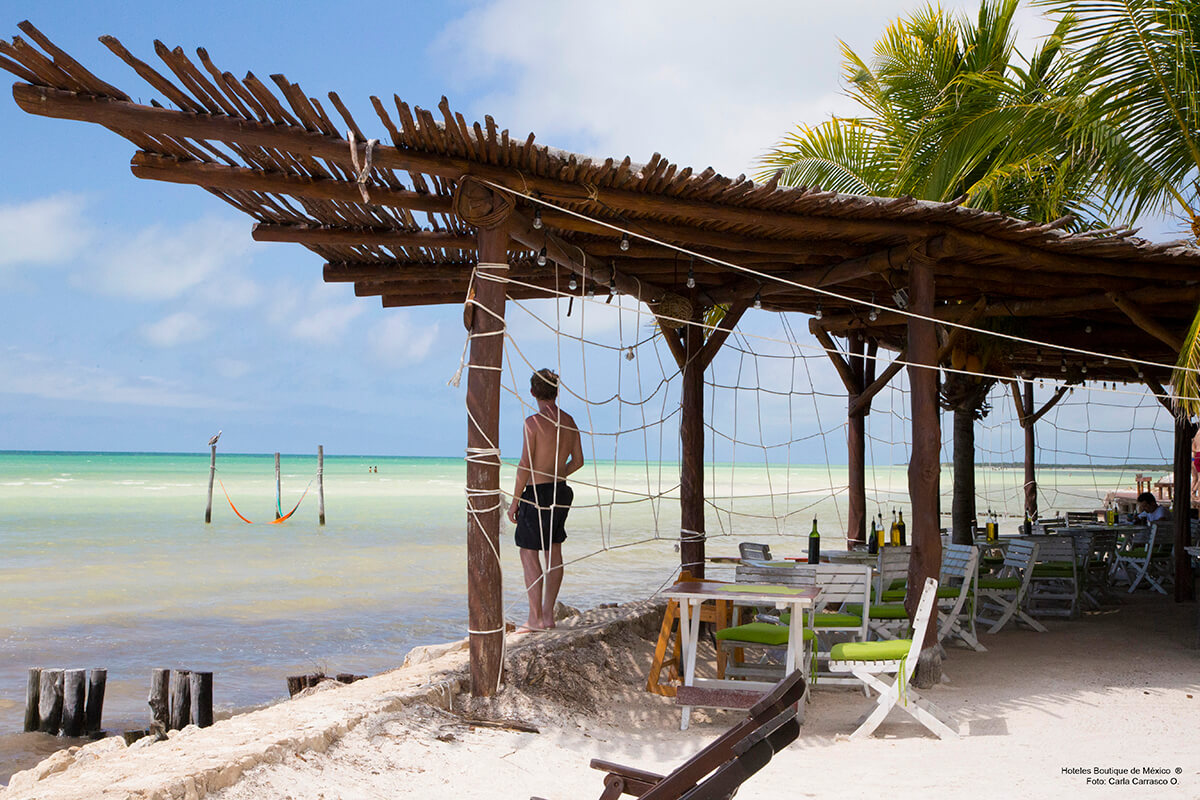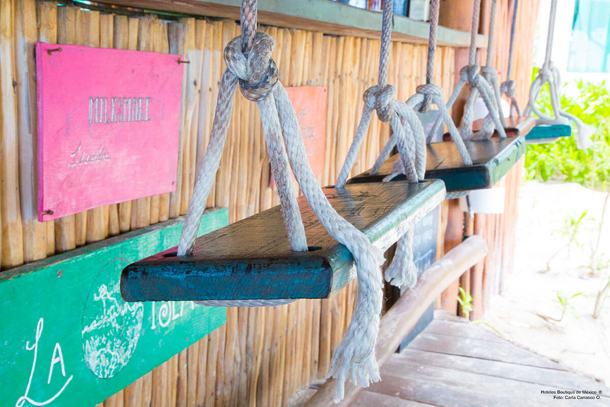 Al igual que la Isla de Holbox, Villas Flamingos mantiene un concepto de arquitectura y decoración ecológico, rustíco y bohemio. Los techos de palapa resguardan habitaciones pintadas con colores vivos, balcones y hamacas listas para arrullarse con la brisa del mar turquesa.