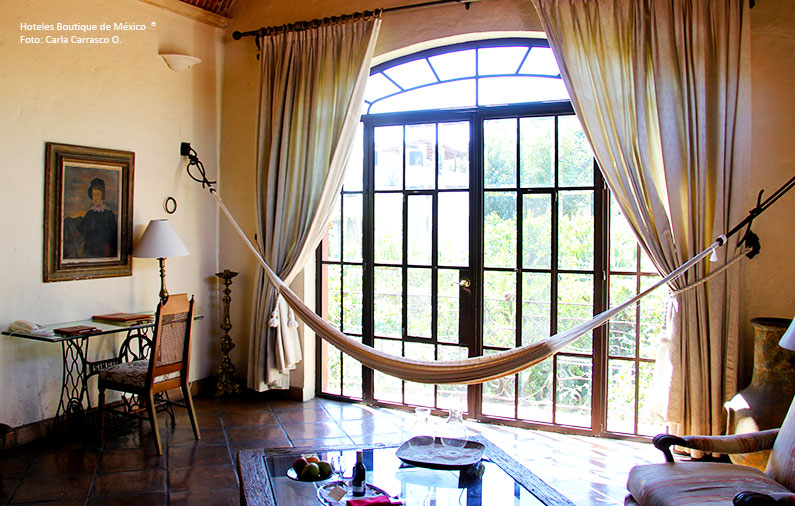 5- Villa Ganz Boutique Hotel, Guadalajara: Uno de los mejores secretos que se alberga en este hotel de cidad se encuentra en la Master Suite “Damiana Cisneros”, dónde encontrará dentro de su habitación una deliciosa hamaca cerca de un ventanal desde donde podrá disfrutar de la calma de su jardín.