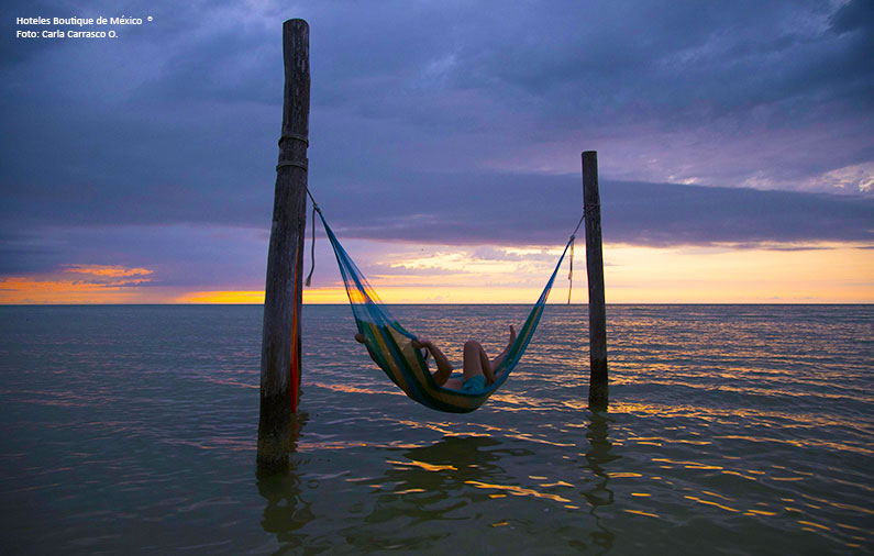 1- Villas Flamingos, Holbox: Singulares, es la mejor forma de describirlas. Dos hamacas dentro de las aguas tranquilas y turquesas del Caribe. Caminar unos metros sobre el agua para poderse deslizar sobre sus hamacas y contemplar las maravillas de la naturaleza.